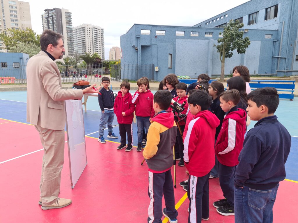 Durante la actividad, que se extendió de 09:00 a 13:30 horas, los docentes recibieron a cuatro clases de 3º básico y cuatro de 4º básico, con quienes conversaron sobre temas como el Sol, la Astronomía y la Física.